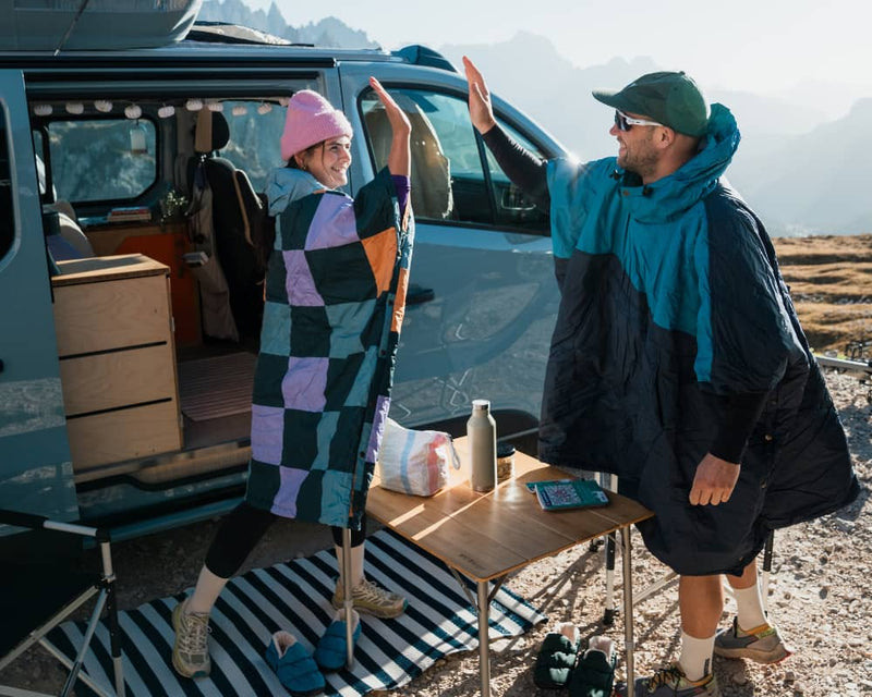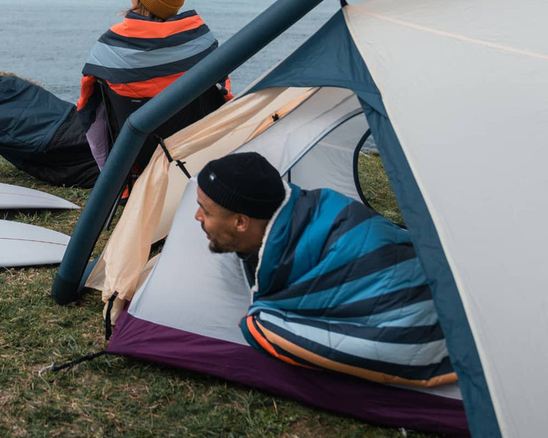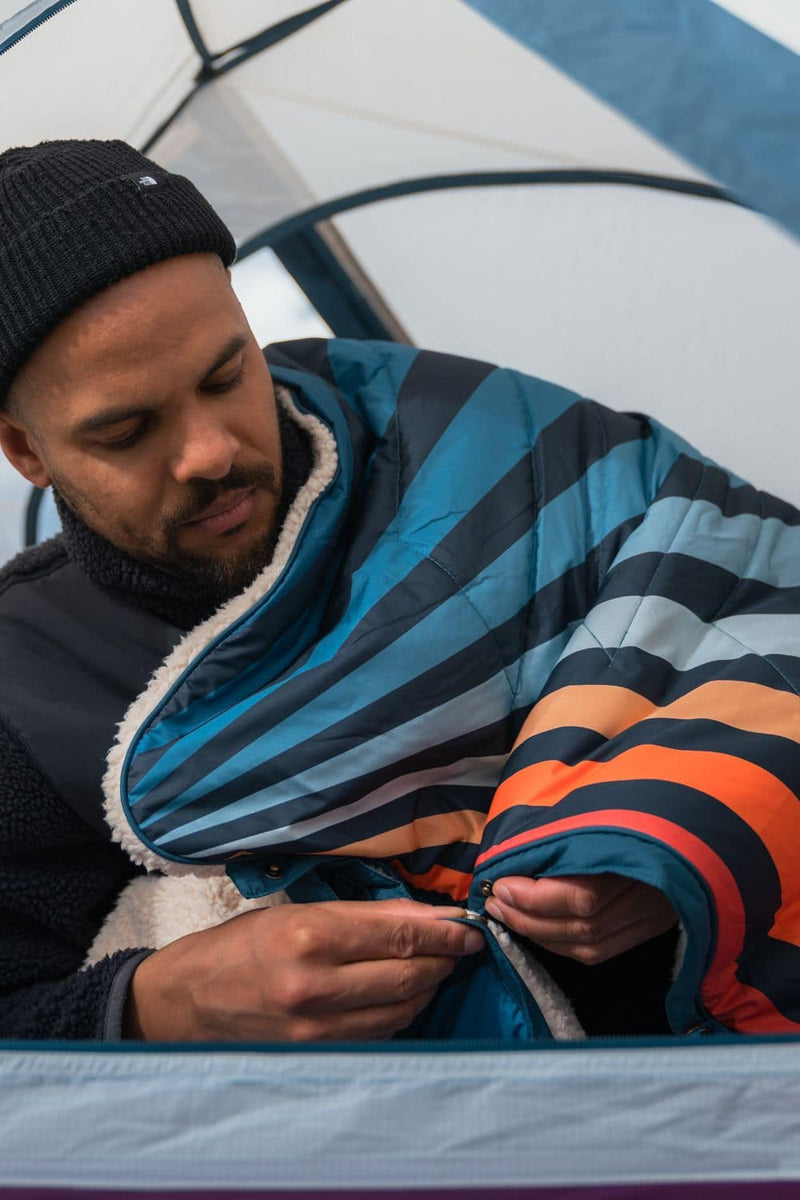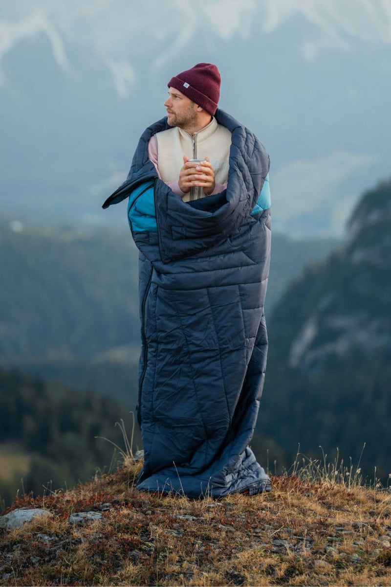 Crafted from 100% recycled plastic bottles and featuring insulated, machine washable construction, this versatile accessory transforms from a blanket to a pillow, sleep sack, and even a waterproof cape. Made with eco-conscious 50D Ripstop REPREVE® fabric, it's your durable, water-repellent, and stain-resistant companion for van life, hiking, picnics, and beach outings.