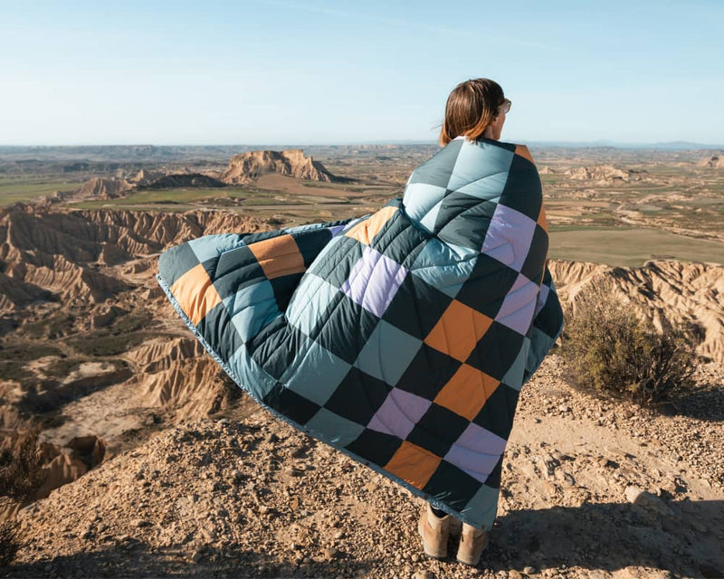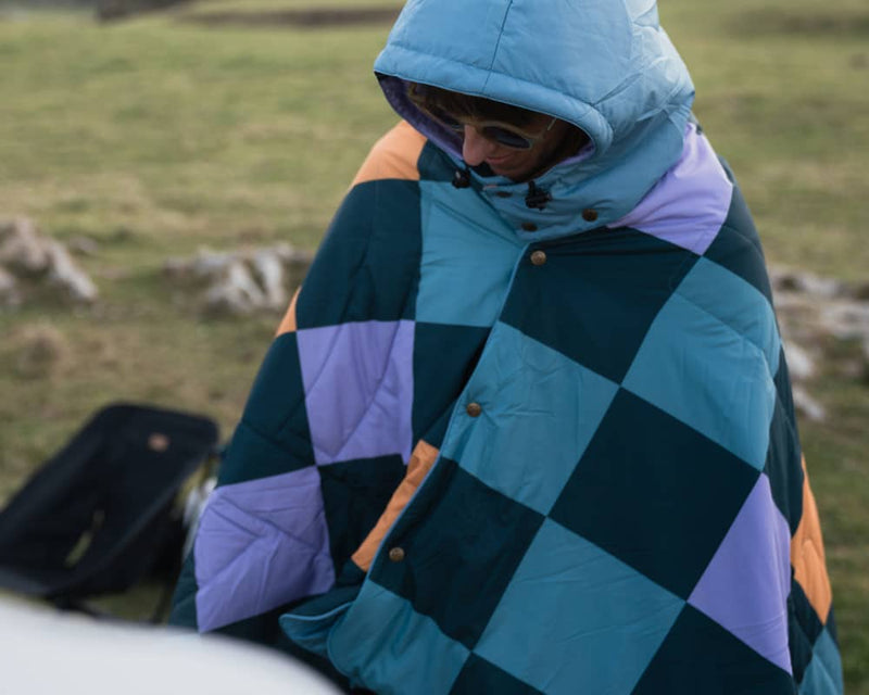Our Travel Blanket is a versatile, packable hooded blanket made from 100% recycled materials.