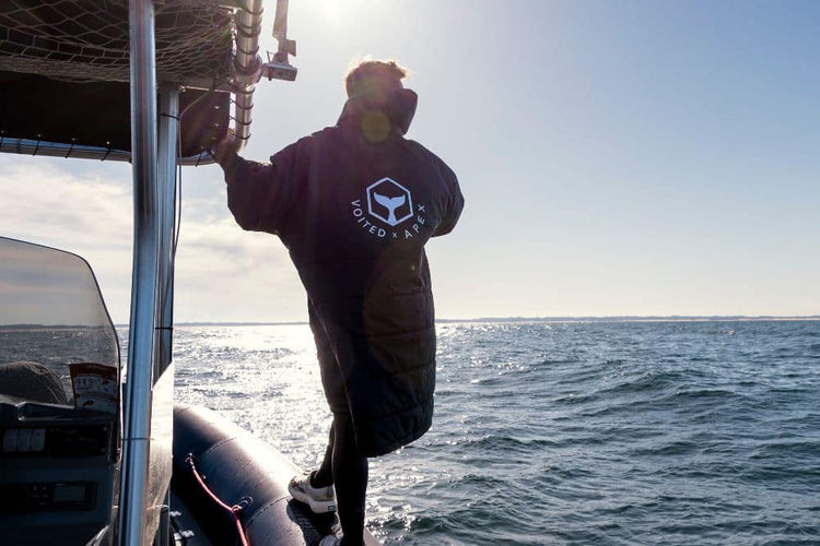 VOITED s'est associé à l'ONG française Apex Cetacea pour créer le VOITED x Apex Outdoor Poncho. Fabriqué avec du tissu recyclé REPREVE Our Ocean®, il dispose d'une poche kangourou zippée imperméable et d'une doublure en microfibre Fleece à séchage rapide. Idéal pour le surf, le camping, la vie en van, la voile et la nage en eau libre. Les bénéfices soutiennent les actions de conservation marine et d'éducation d'Apex Cetacea.