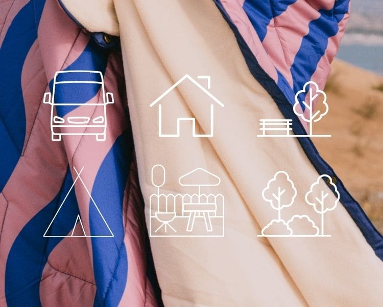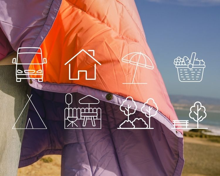 Crafted from 100% recycled plastic bottles and featuring insulated, machine washable construction, this versatile accessory transforms from a blanket to a pillow, sleep sack, and even a waterproof cape. Made with eco-conscious 50D Ripstop REPREVE® fabric, it's your durable, water-repellent, and stain-resistant companion for van life, hiking, picnics, and beach outings.