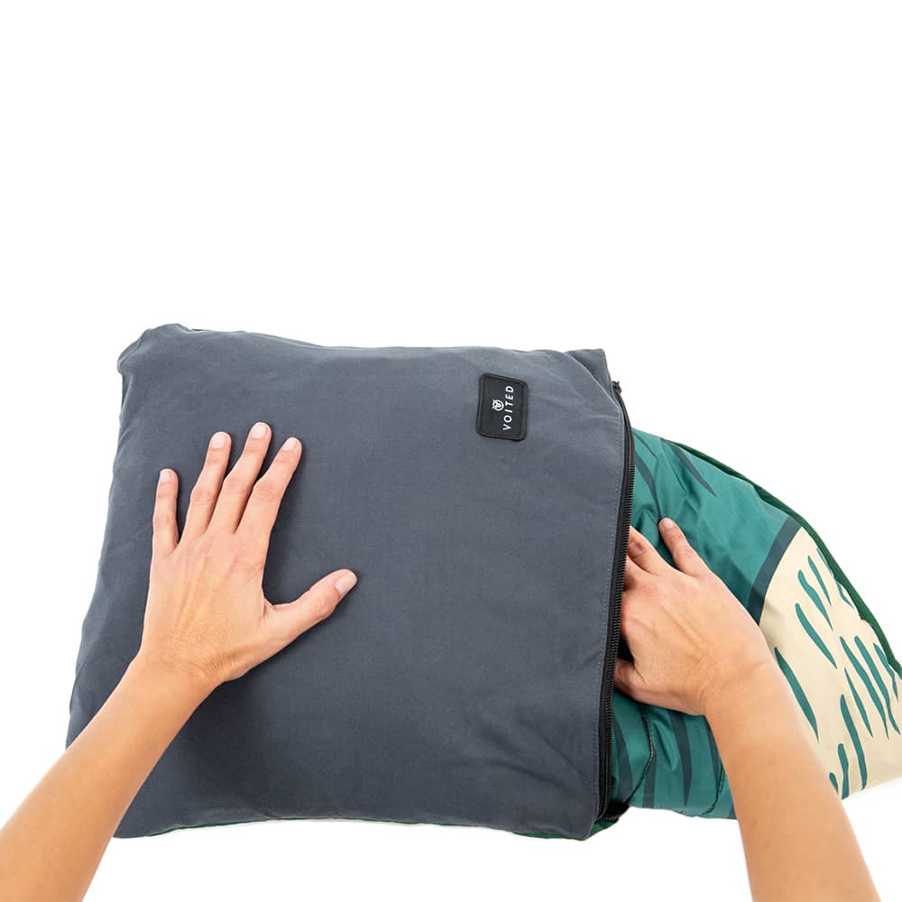 Packs into a pillow